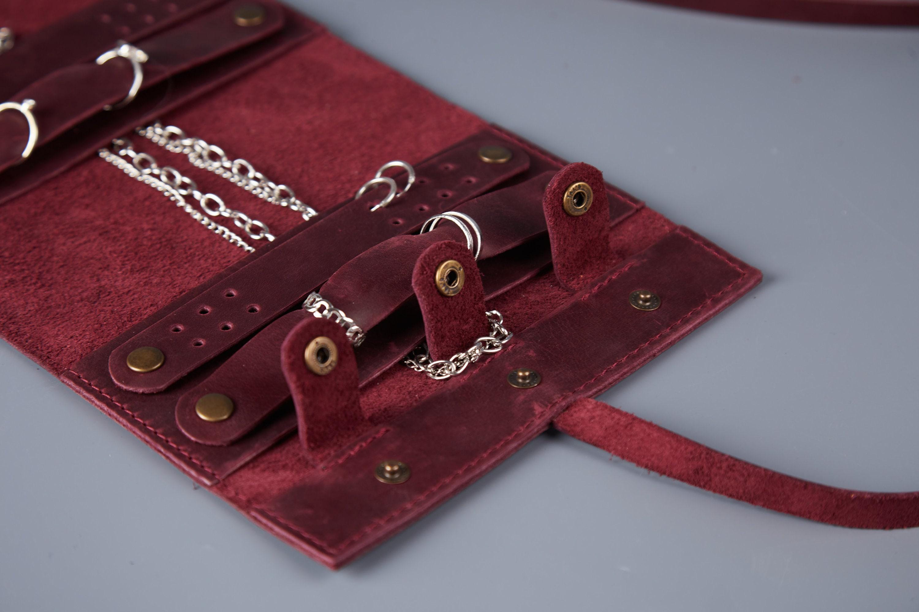 Organiseur de rouleau de bijoux en cuir : étui à bijo...