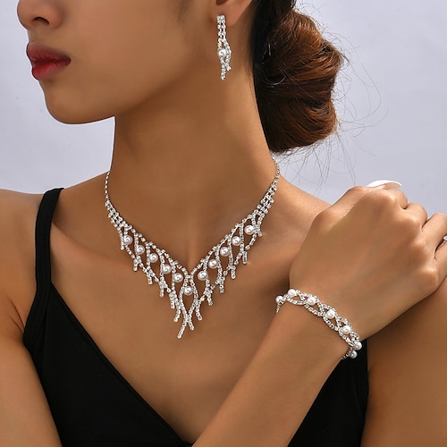 Ensembles de bijoux de mariée 1 ensemble Perle imitation Dia...
