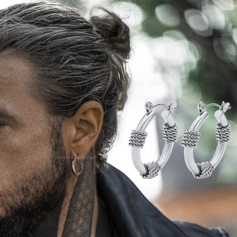 Boucles d'oreilles créoles pour hommes, boucles d'oreilles design enroulé de fil de bo...