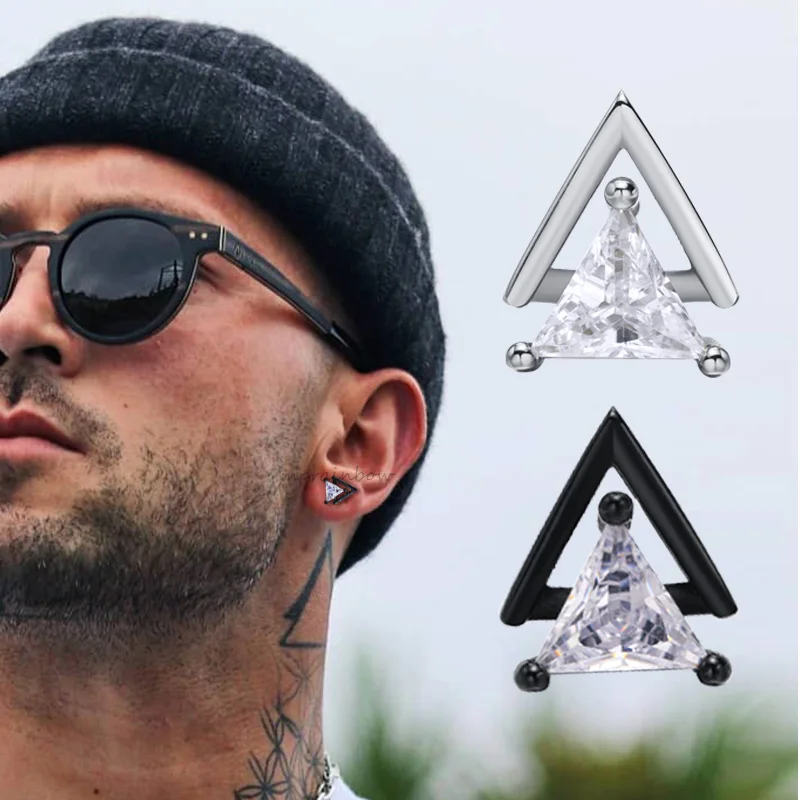 Boucles d'oreilles triangulaires, boucles d'oreilles pour hommes, boucles d'oreilles triangulaires e...