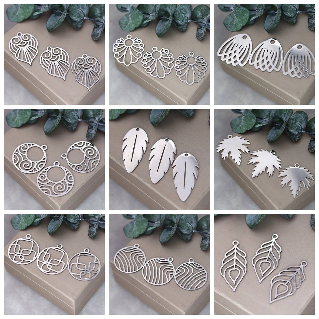 Breloques hibou en acier inoxydable, 3 pièces, boucles d'oreilles, collier, Bracelet, feuille...