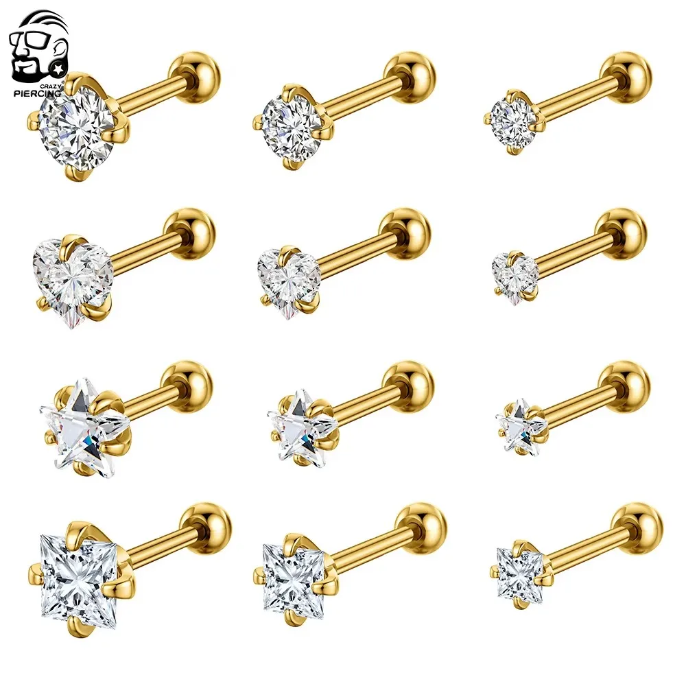 4 paires de clous d'oreilles de forme carrée, couleur or, cœur, étoile, Mini bou...