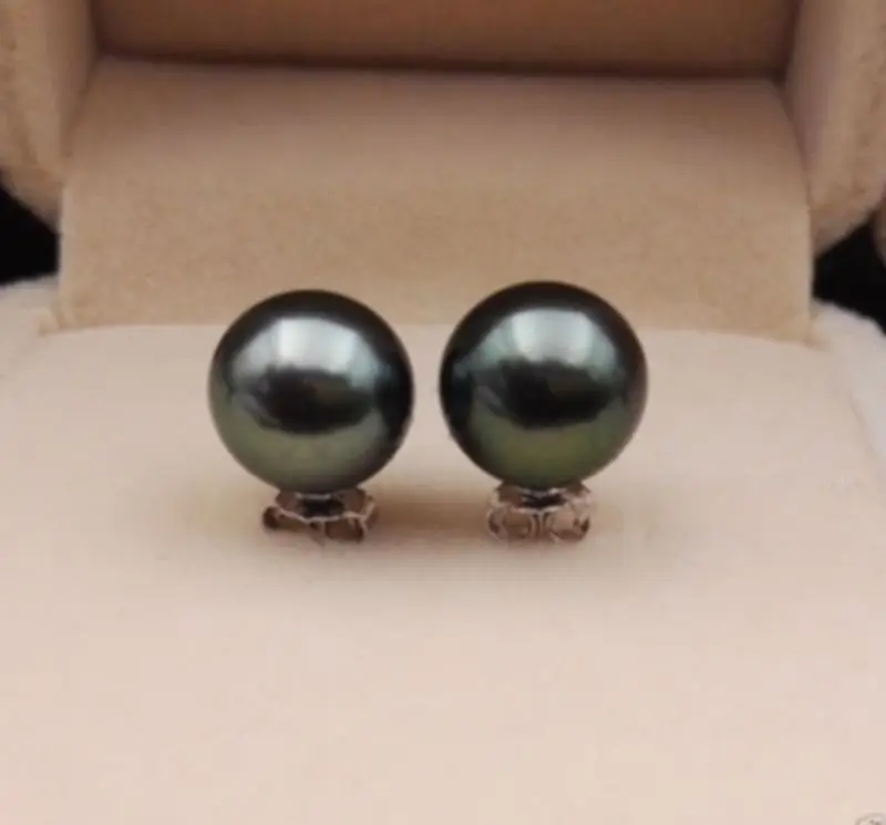Boucles d'oreilles en perles noires de Tahiti AAAA naturelles parfaites, 10-11mm, or 14 carats