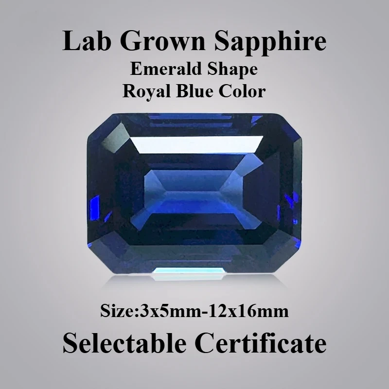 Saphir cultivé en laboratoire, couleur bleu Royal, pierre précieuse taille émer...