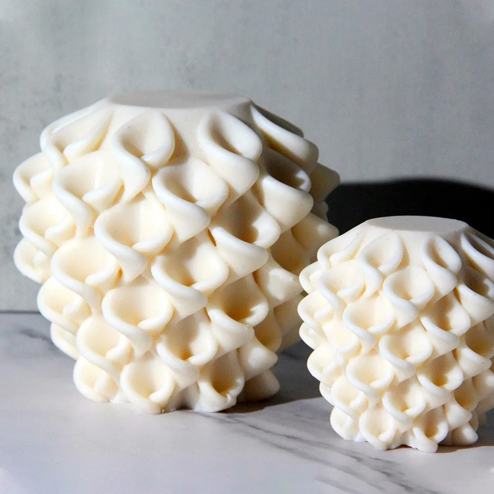 Géométrie fleur boule bougie Silicone moule 3D cylindrique tourbillon Sculpture pilier...