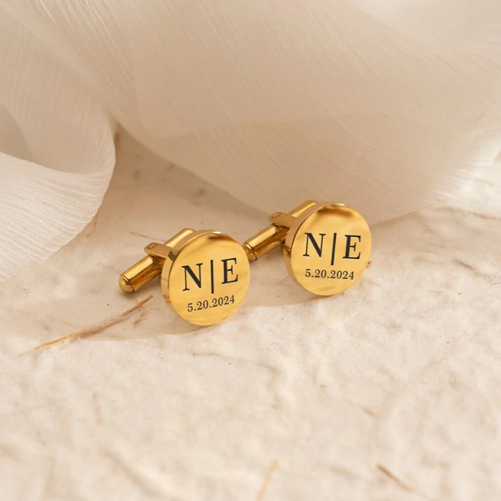 Tangula boutons de manchette personnalisés pour marié hommes en acier inoxydable initi...