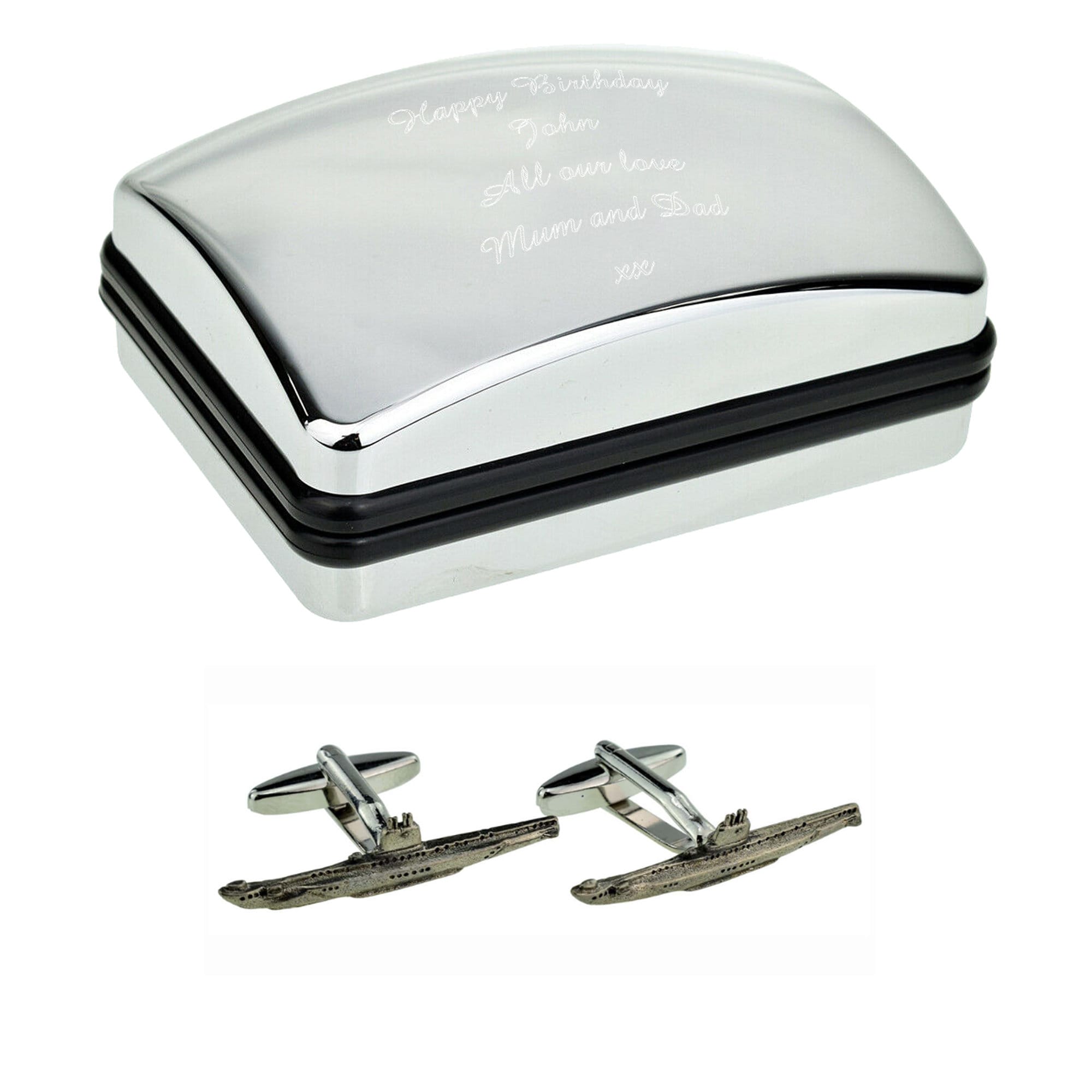 Boutons de manchette sous-marin bleu marine Livré dans une boîte à boutons de ma...