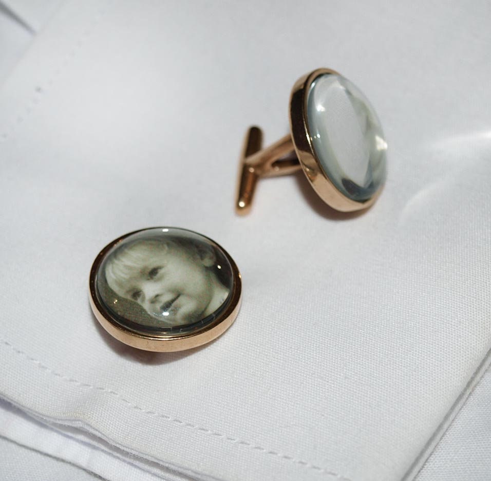 Boutons de manchette en bronze massif avec vos propres photographies sous verre. Les boutons de manc...