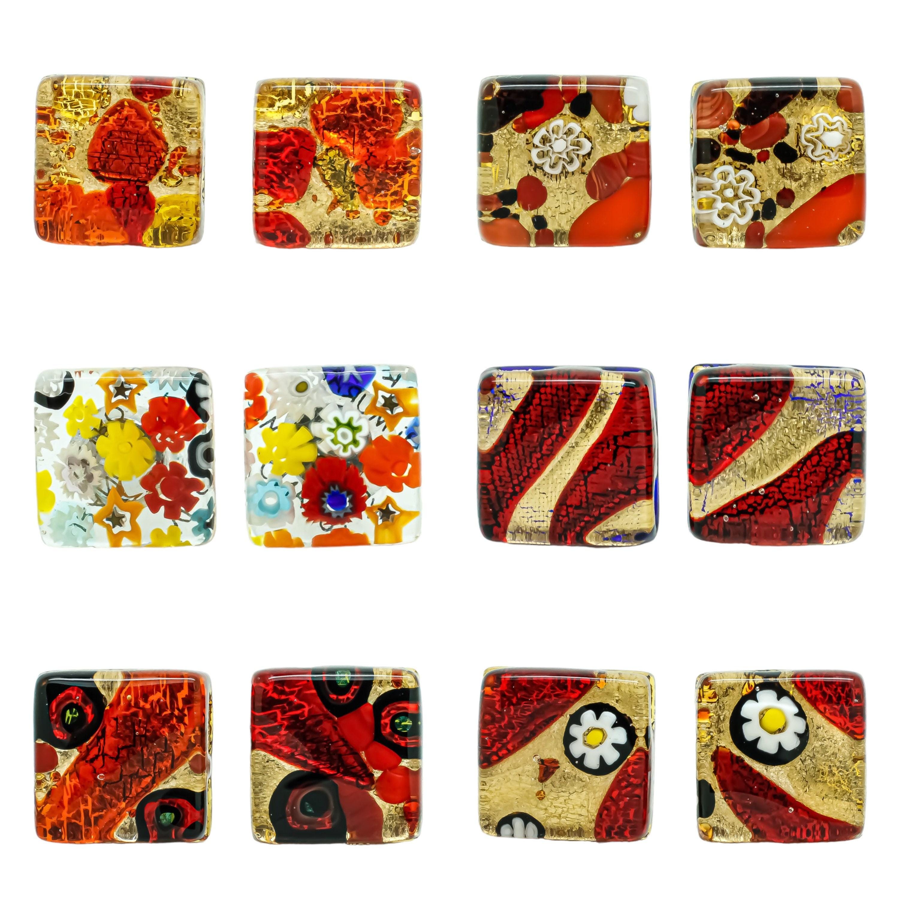 Paire de boutons de manchette en verre de Murano Rouge Multi Millef...