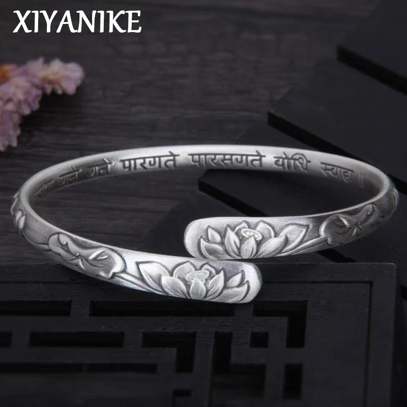 XIYANIKE Vintage Thai argent fleur de Lotus manchette Bracelet pour...