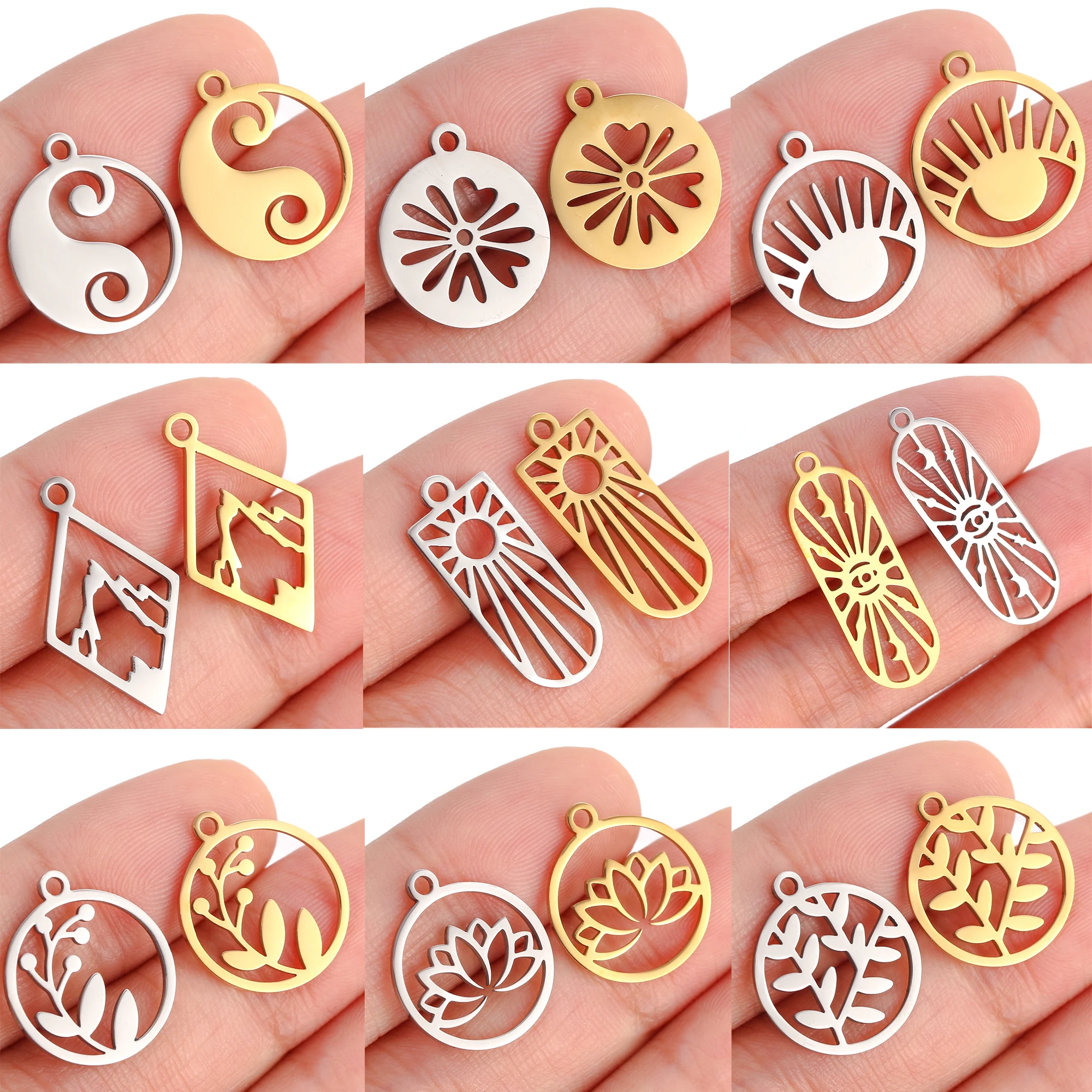 Breloques plante arbre fleur en acier inoxydable, pendentifs montagne/Lotus/oeil/étoile, coll...