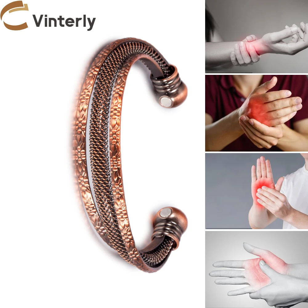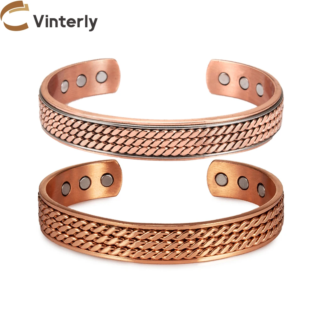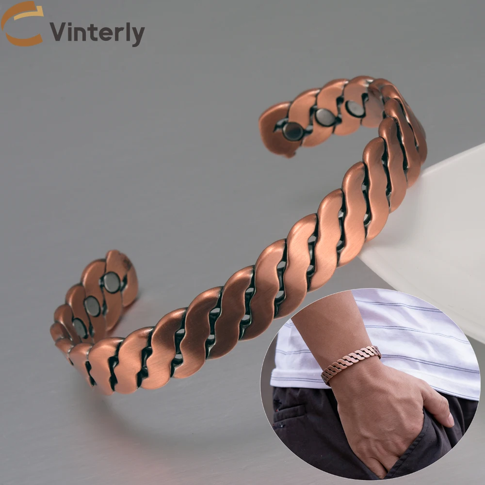 Bracelet torsadé en cuivre pur Vinterly pour hommes et femmes, thérapie magnéti...