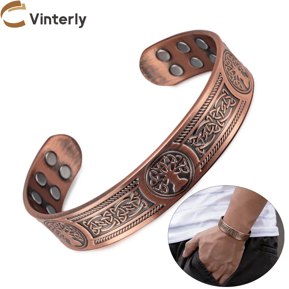 Bracelets Vinterly en Cuivre Pur, Style Viking Yggdrasil, 15mm, Manchette Ajustable, Énergie ...