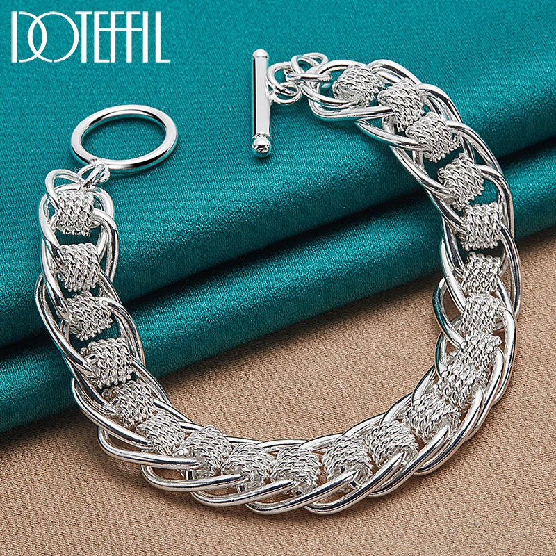 DOTEFFIL 925 Bracelet en argent Sterling coeur/cercle/Bracelets à serrure carrée Brace...