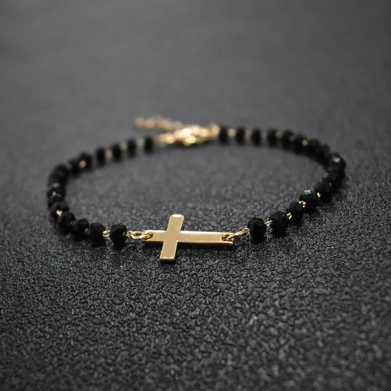 Bracelet chapelet Style croix latérale, nouveau Design, perles noires, chaîne de couleu...