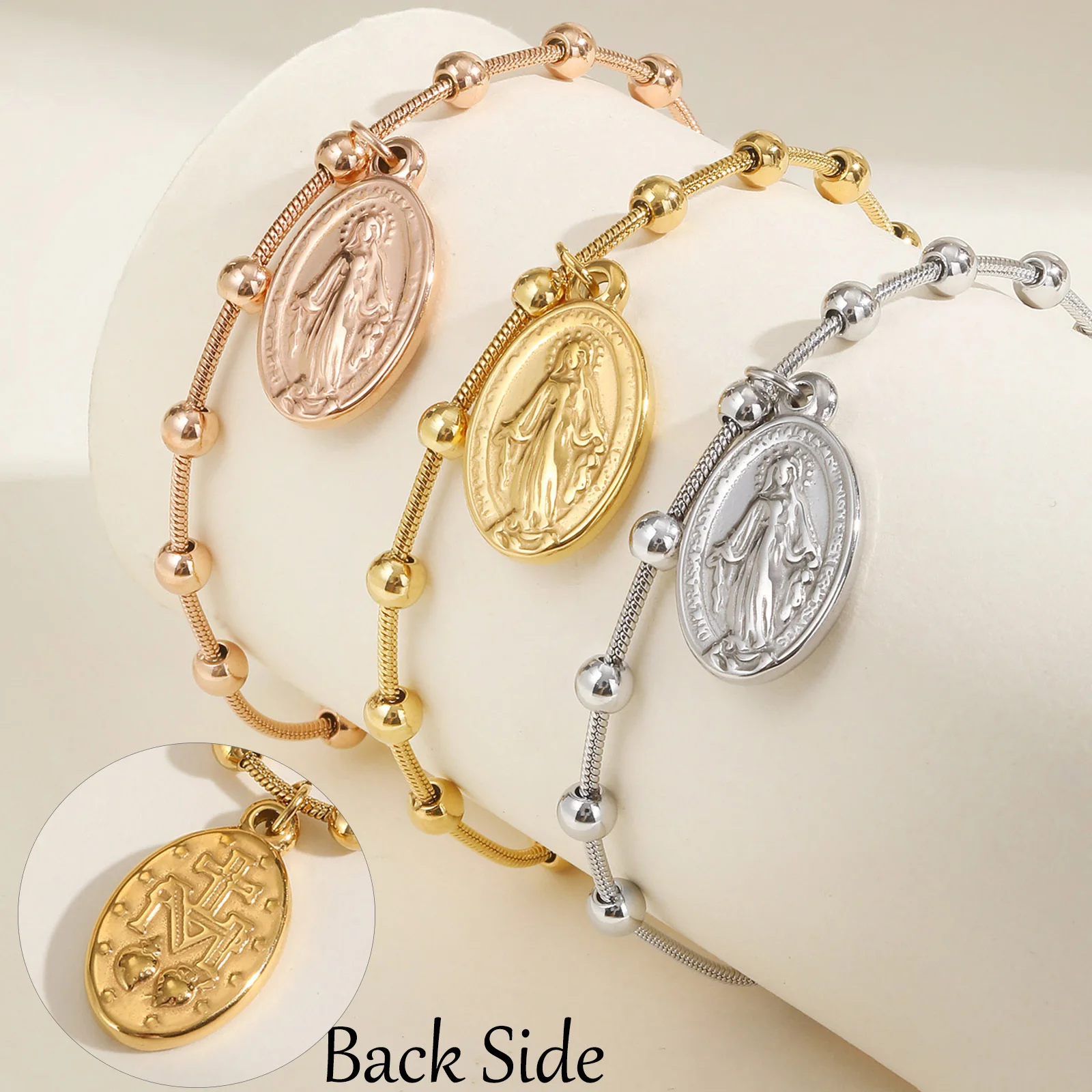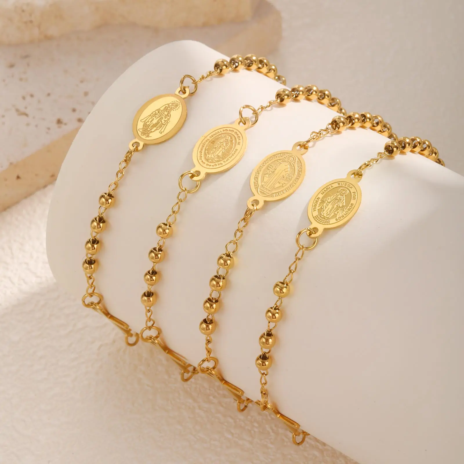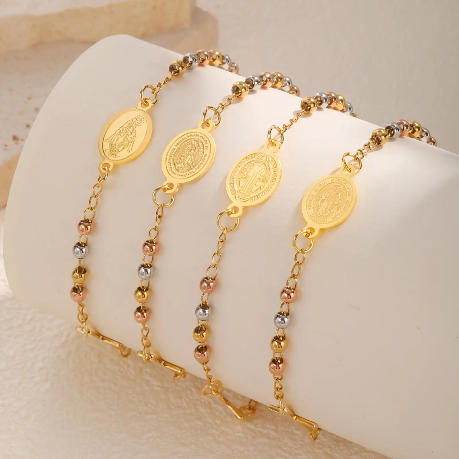 Bracelet croix chapelet sacré tricolore pour femmes, Bracelet de couleur or en acier inoxydab...
