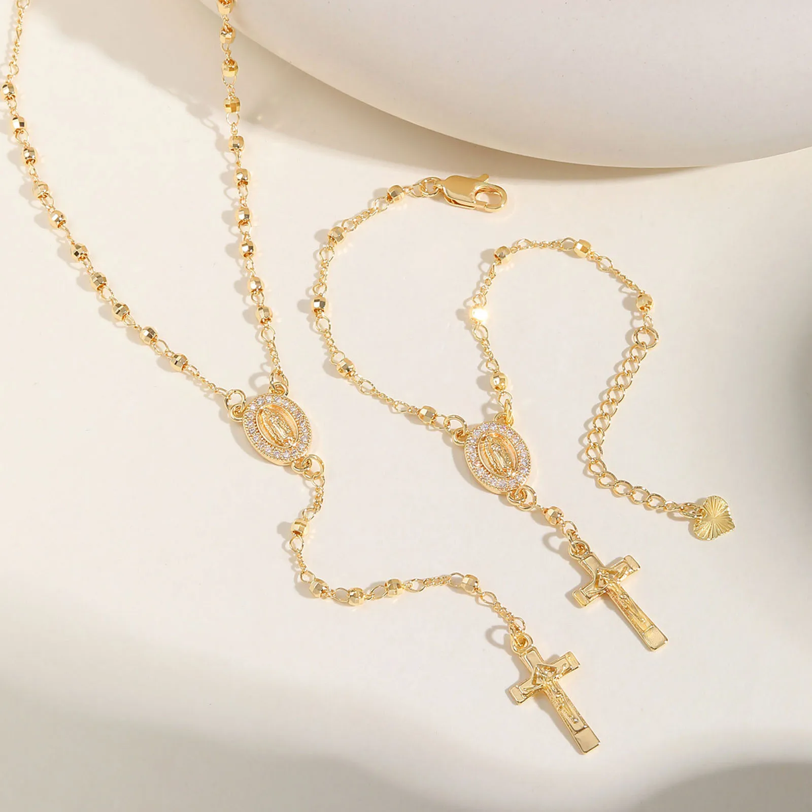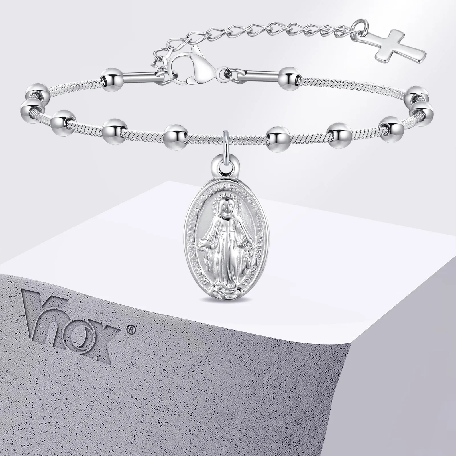 Vnox-Bracelet chapelet en acier inoxydable plaqué or pour femme, croix religieuse, bracelets ...