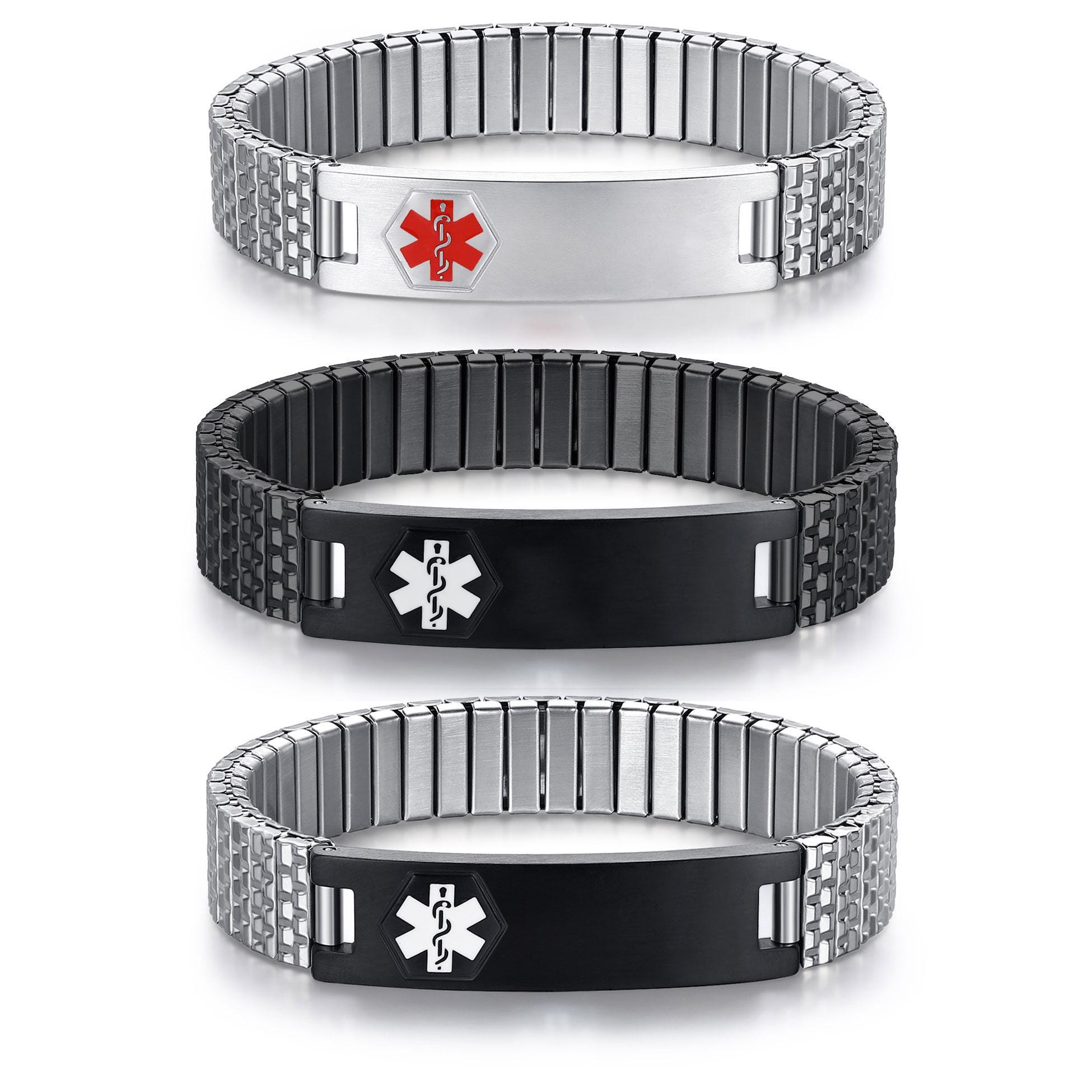 Bracelet extensible Medical Alert ID en acier inoxydable pour homme...