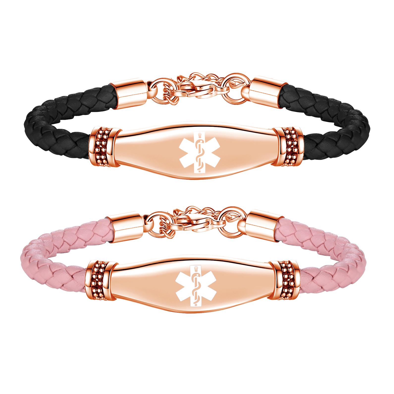 GRAVURE PERSONNALISÉE ~ Medical ID Bracelet en cuir rose ou ...