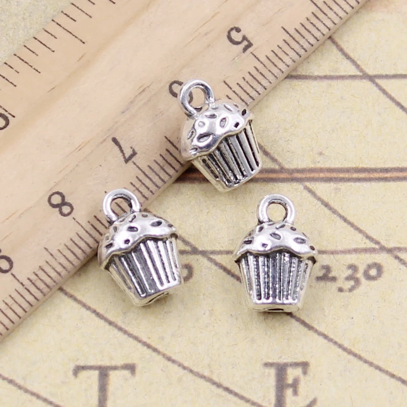 10 pièces breloques 3D Cupcake gâteau 13x10x8mm tibétain bricolage rétro ...