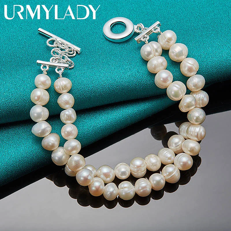 URMYLADY 925 en argent Sterling naturel perle d'eau douce chaîne 20 cm Bracelet pour les femme...
