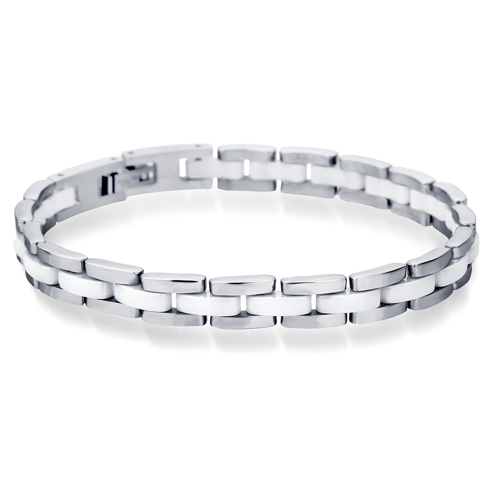 VQYSKO 20 cm Bracelet en céramique blanche Bracelet en acier inoxydable chaîne lien Bra...