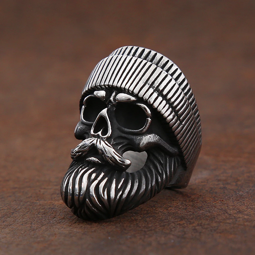 Chapeau Vintage grande barbe crâne anneau pour hommes gothique en acier inoxydable crâne...