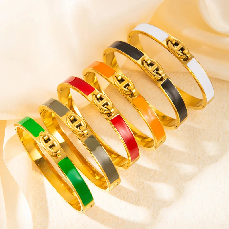 Bracelet nez de cochon en forme de H, 1 pièce, en acier inoxydable, à la mode et polyv...
