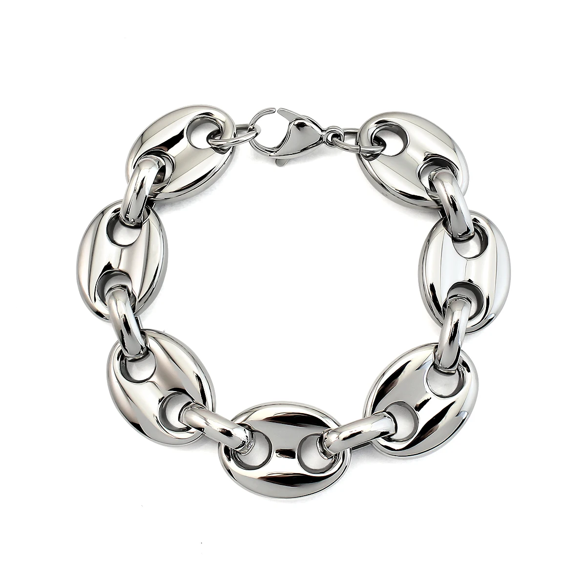 Bracelet chaîne à maillons en forme de nez de cochon creux plaqué argent PVD r&e...
