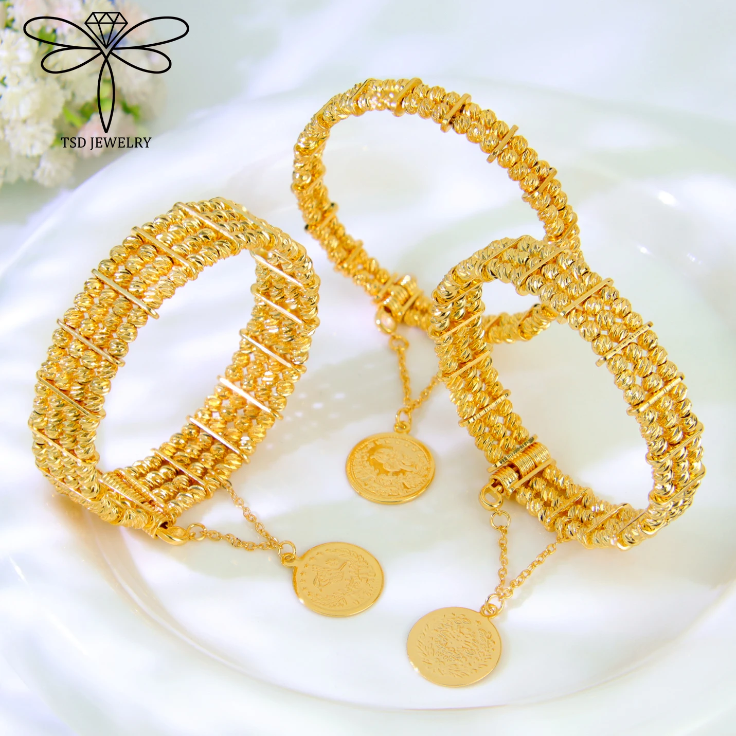 Bracelet ouvert plaqué or de dubaï, plaqué or 24 carats, multicouche, bracelets d...
