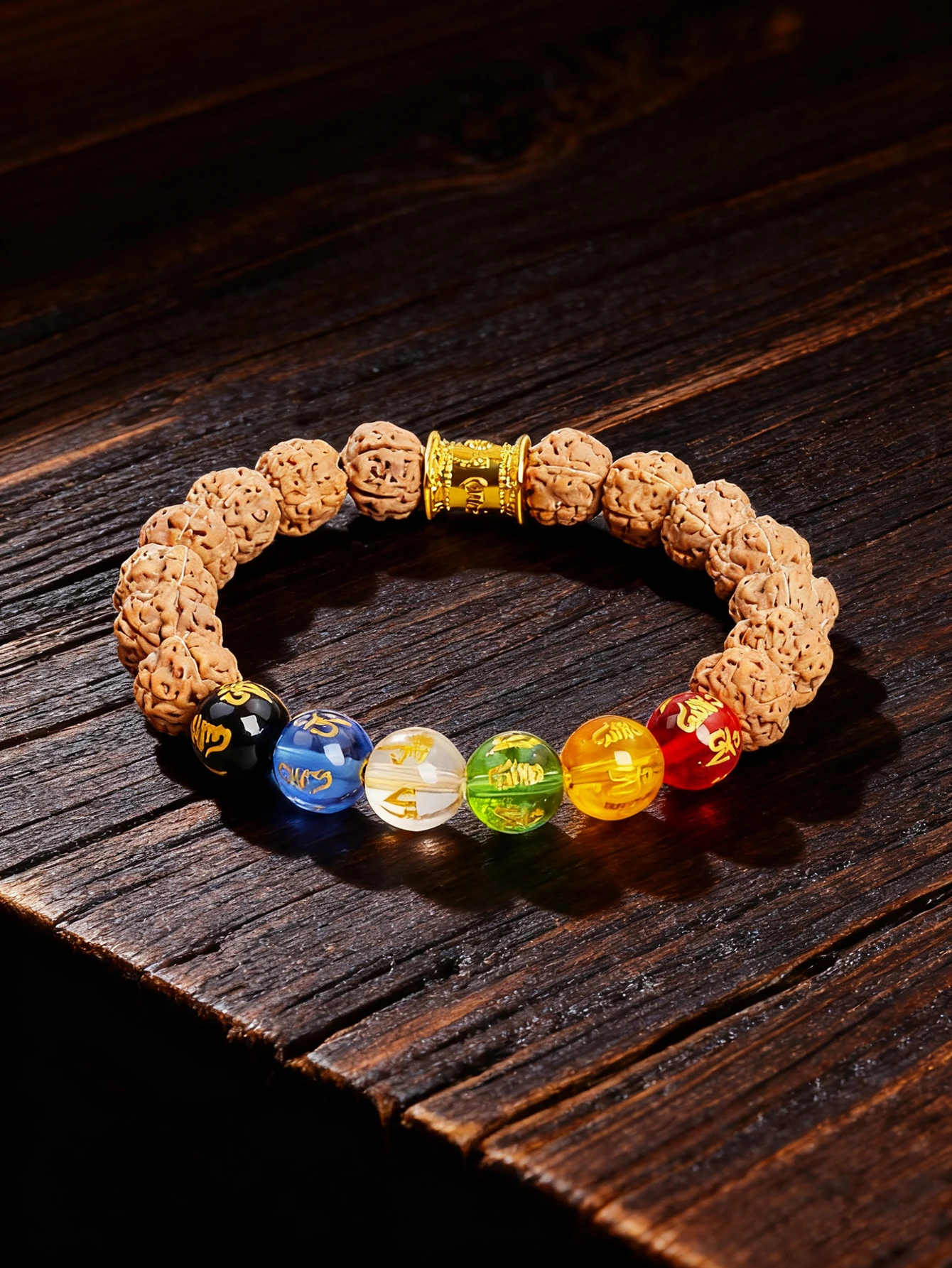 Bracelet en pierre naturelle Vajra Bodhi Rudraksha avec 7 chakras cristal six mots véritables...