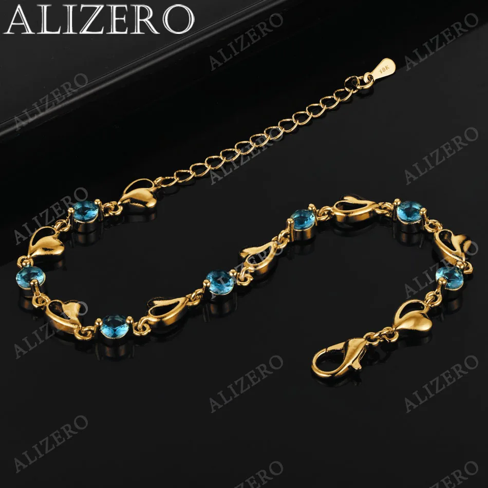 ALIZERO-Bracelets coeur saphir pour femme, argent regardé 925, or 18 carats, bleu, cadeau de ...