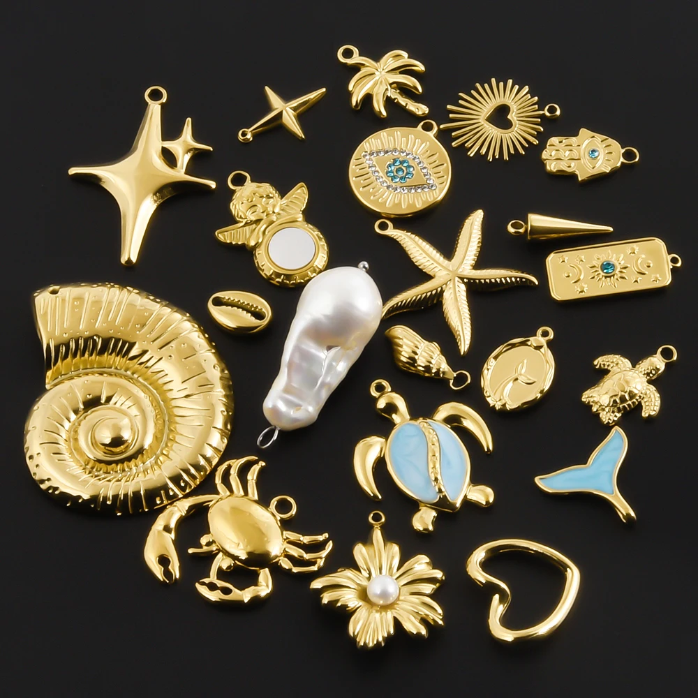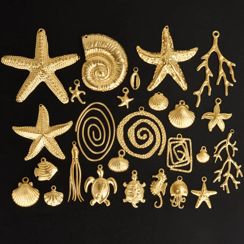 5 pièces couleur or mer Animal conque crabe étoile de mer charme pendentif en acier in...