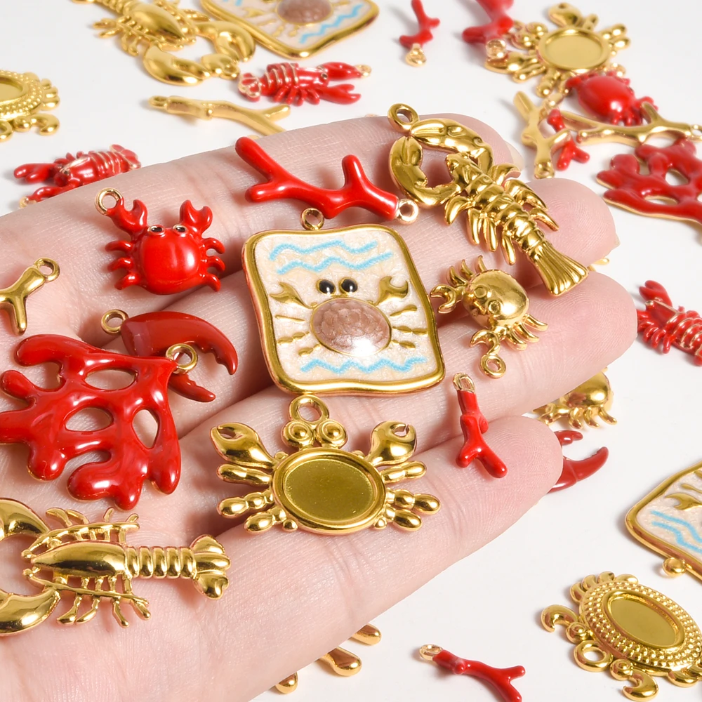 10 pièces couleur or homard crabe corail breloque pendentif en acier inoxydable pour la fabri...