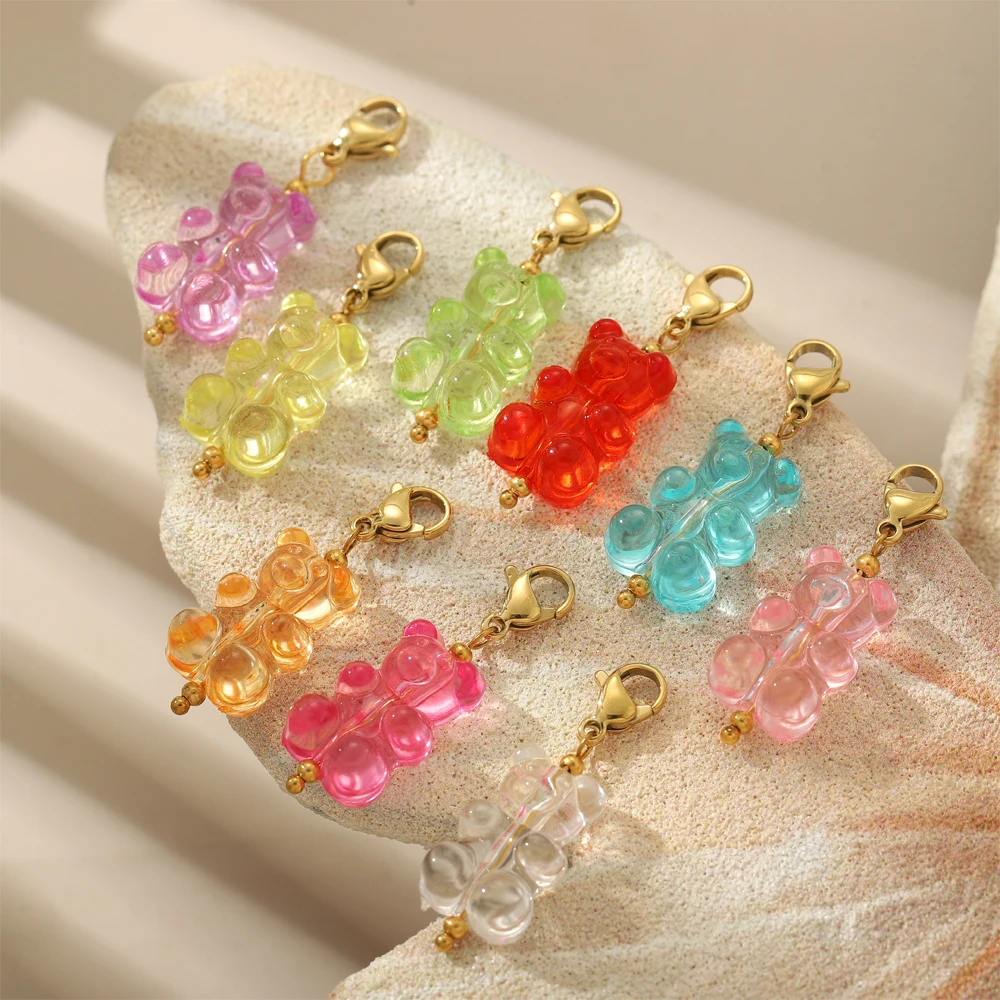 CARLIDANA 2 pièces plaqué or en acier inoxydable gelée ours breloques gommeux o...