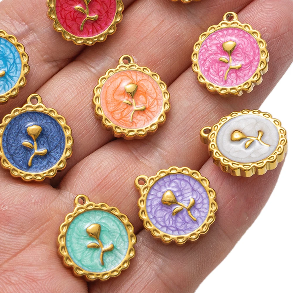 5 pièces or acier inoxydable émail fleur coeur lune pendentif à breloques pour ...