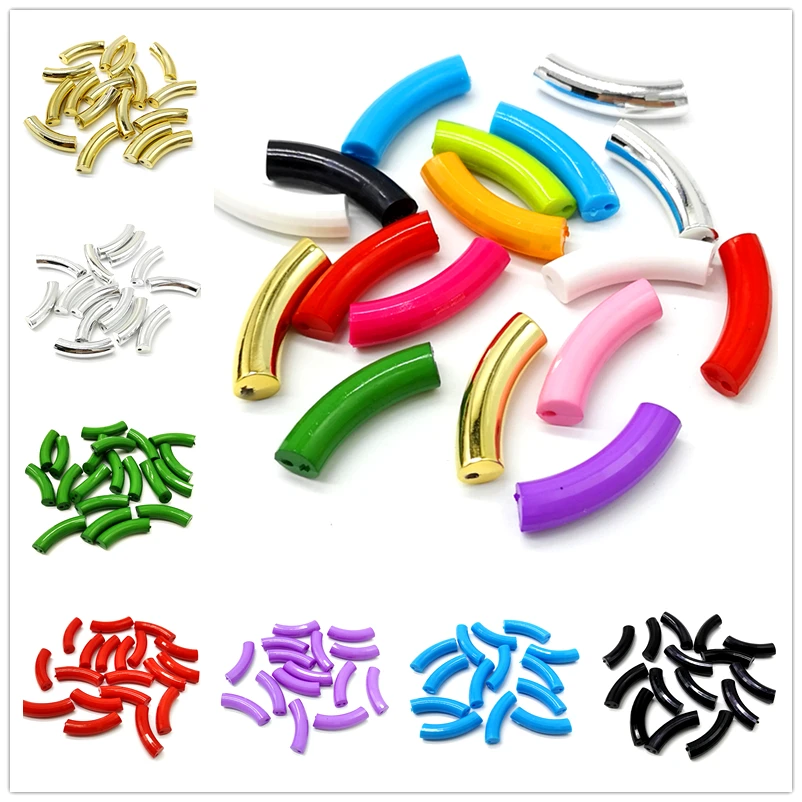 Perles de Tuyau Coudées en Or et Argent, 8x33mm, pour Bijoux, Pendentif de Bracelet Exé...