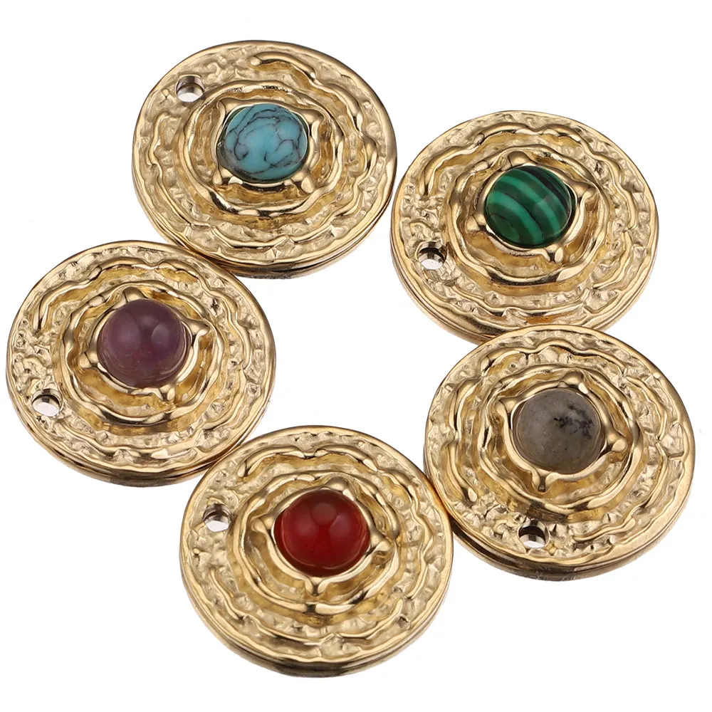 Breloques rondes en acier inoxydable de 19MM, 5 pièces/lot, couleur or, pendentifs en pierre ...
