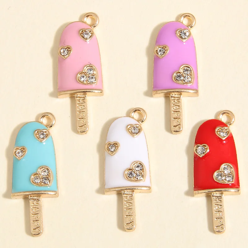 10 pièces couleur or 25x9mm mignon émail crème glacée breloques heureux ...