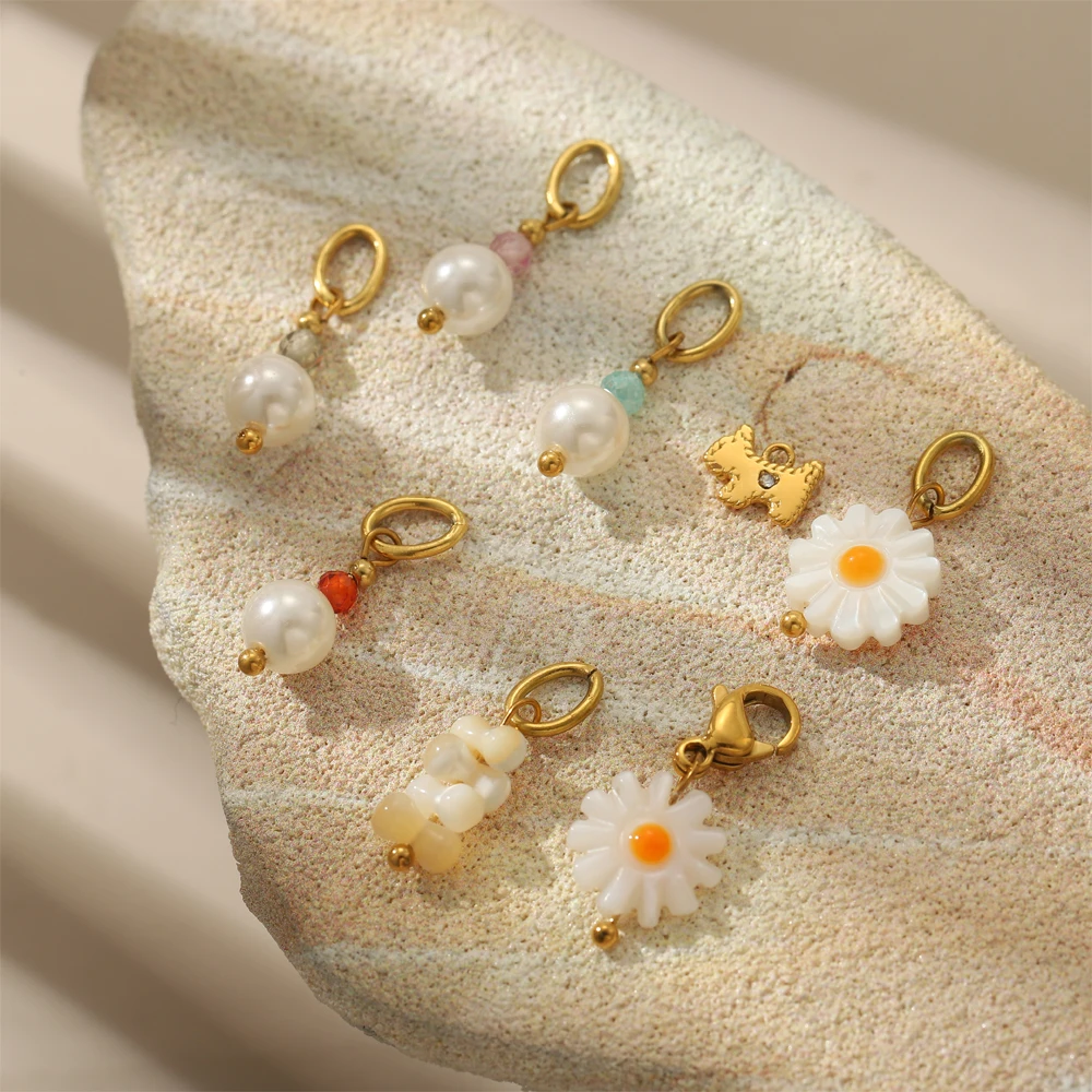 CARLIDANA 2 pièces plaqué or perle marguerite breloqu...