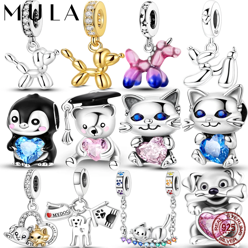 Breloques en argent Sterling 925, chat, amour, animaux de compagnie, ballon à Air, caniche, p...