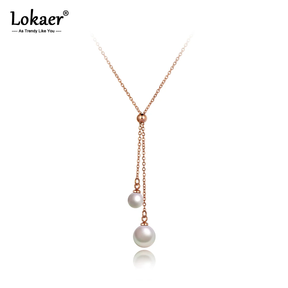 Lokaer-Collier en Titane et Acier Inoxydable pour Femme, Perle Blanche, Pendentif à Breloque,...