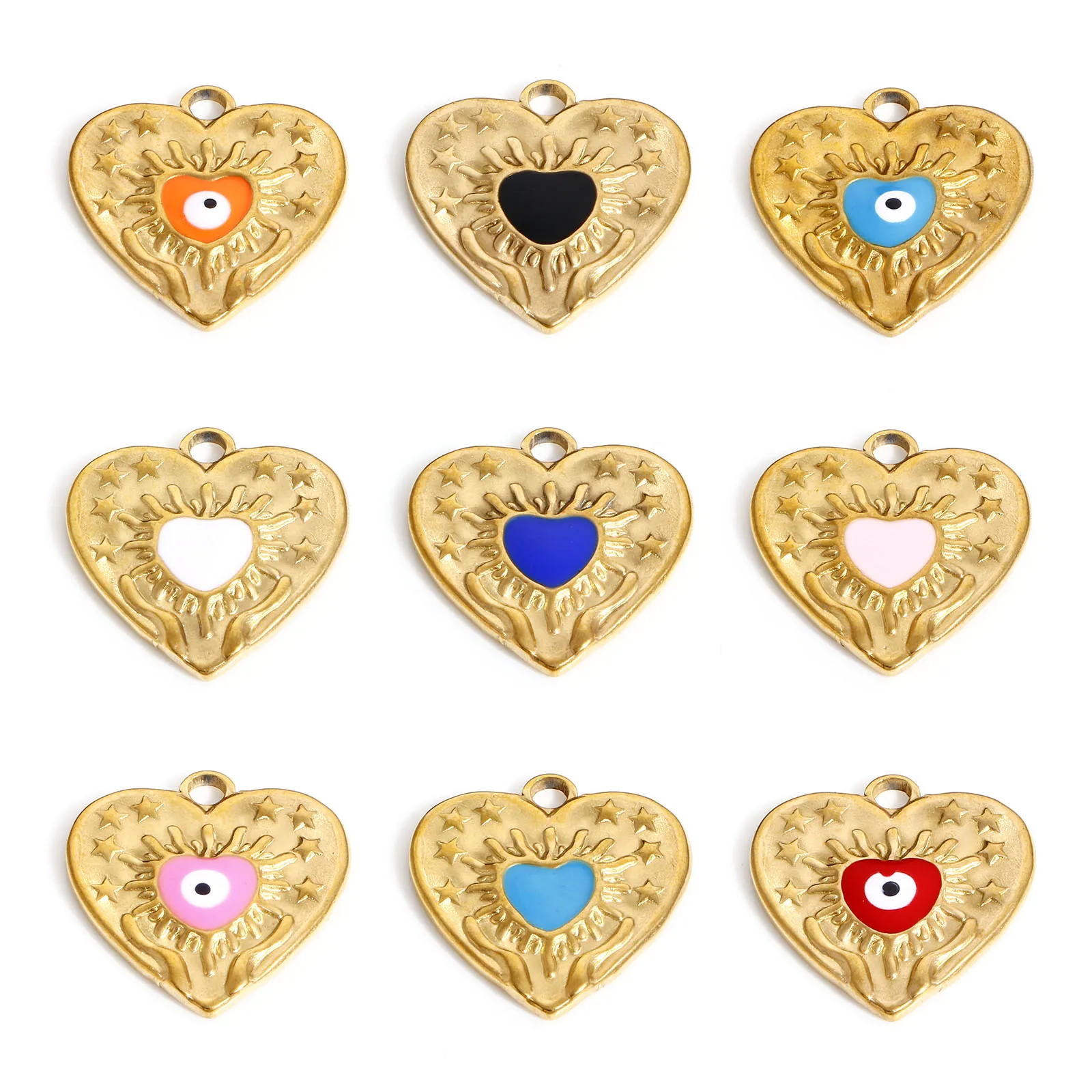 Breloques en forme de cœur et de mauvais œil en acier i...