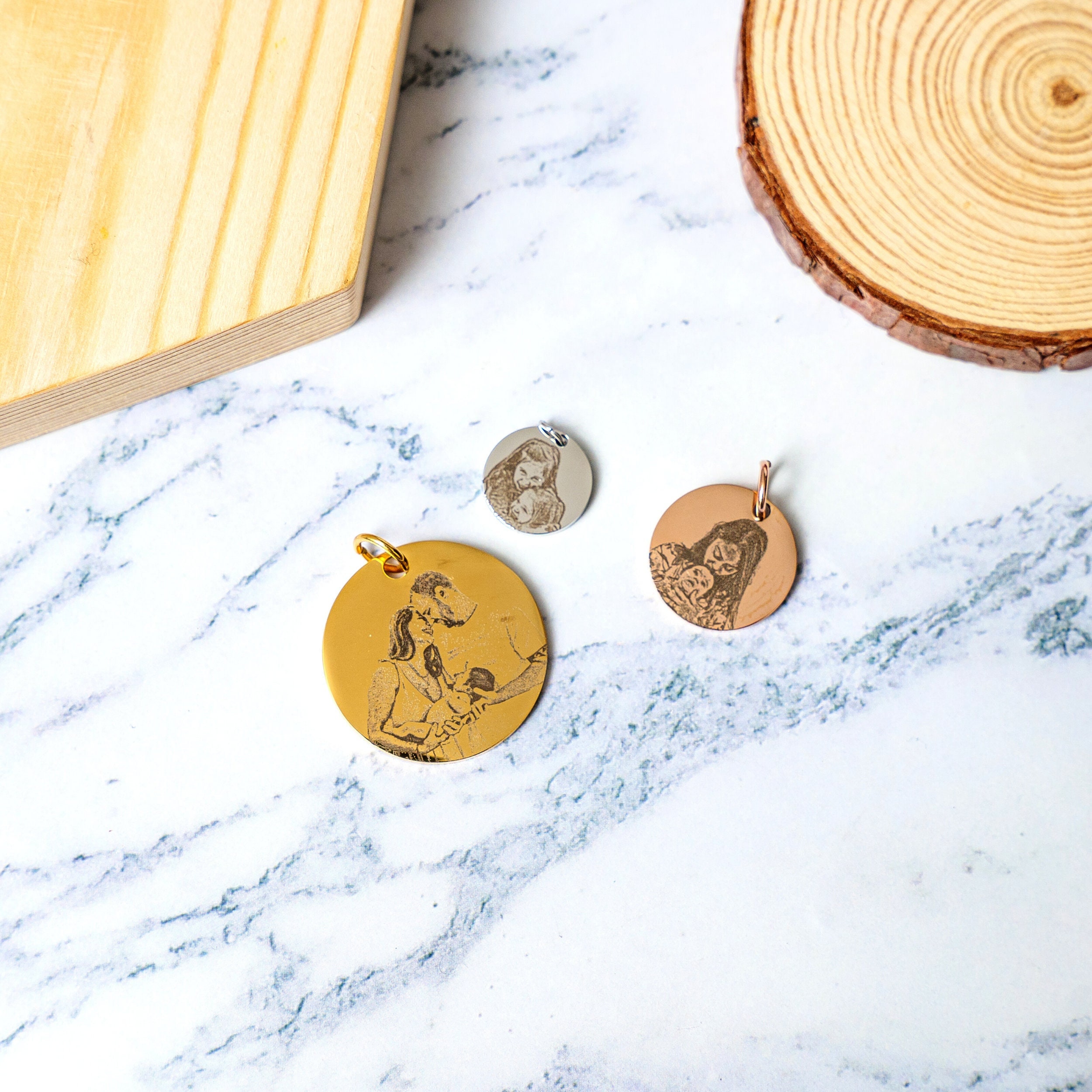 Pendentifs véritables photos en or, argent, or rose * Portra...