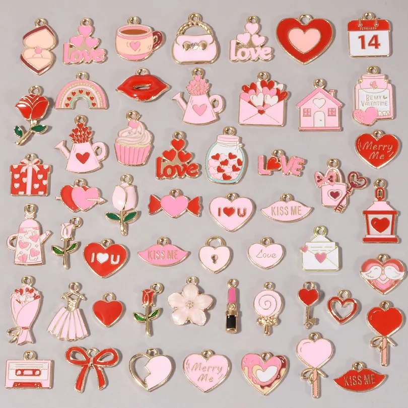 10-100 pcs/lot série émail rose saint valentin amour arcs aléatoire mixte pende...