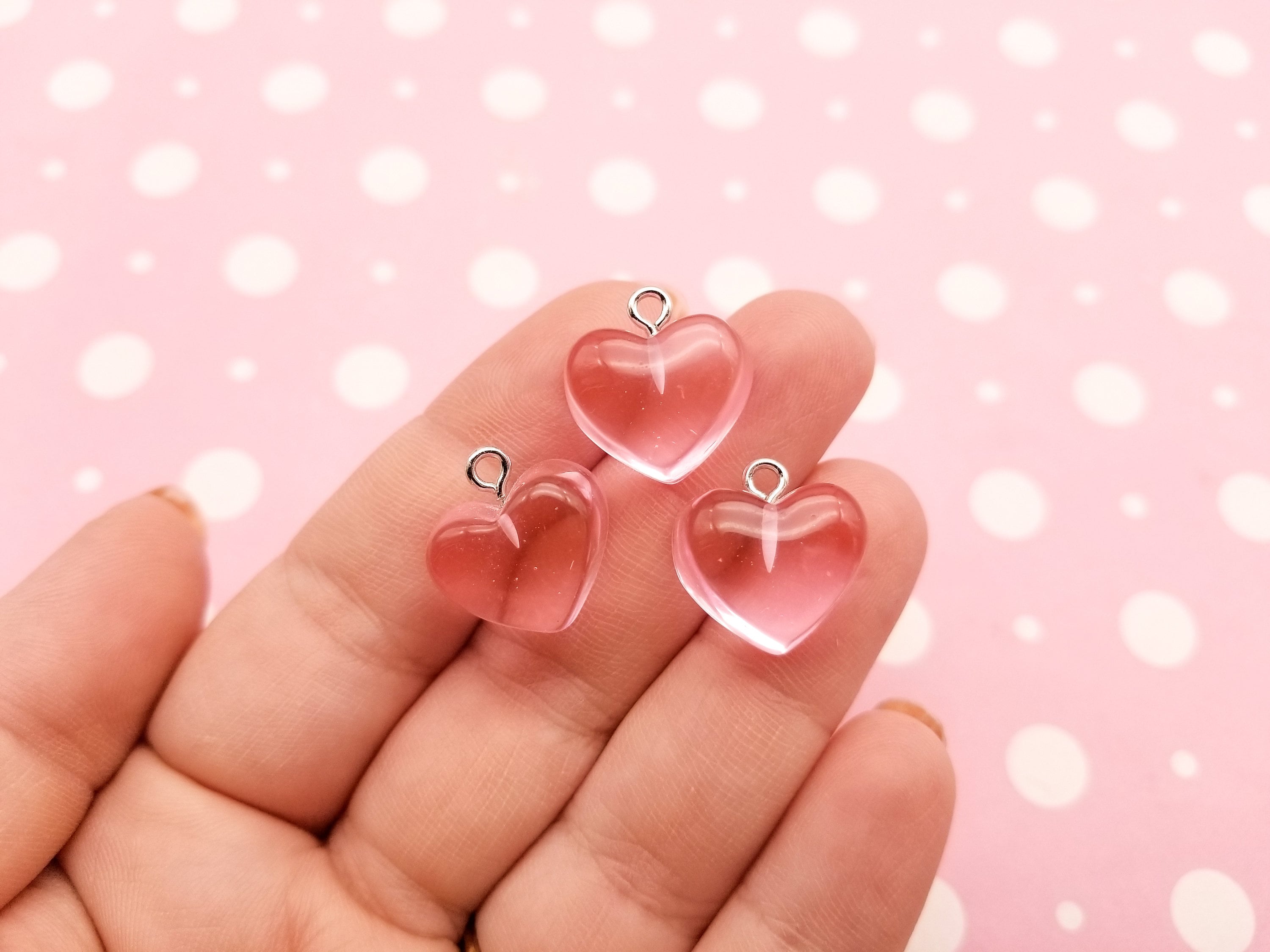 6 breloques coeur en résine rose translucide, taxis Saint-Va...