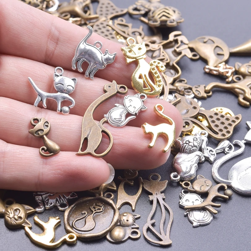 Mélange aléatoire mignon Animal chat en vrac pendentif à breloque fabrication d...