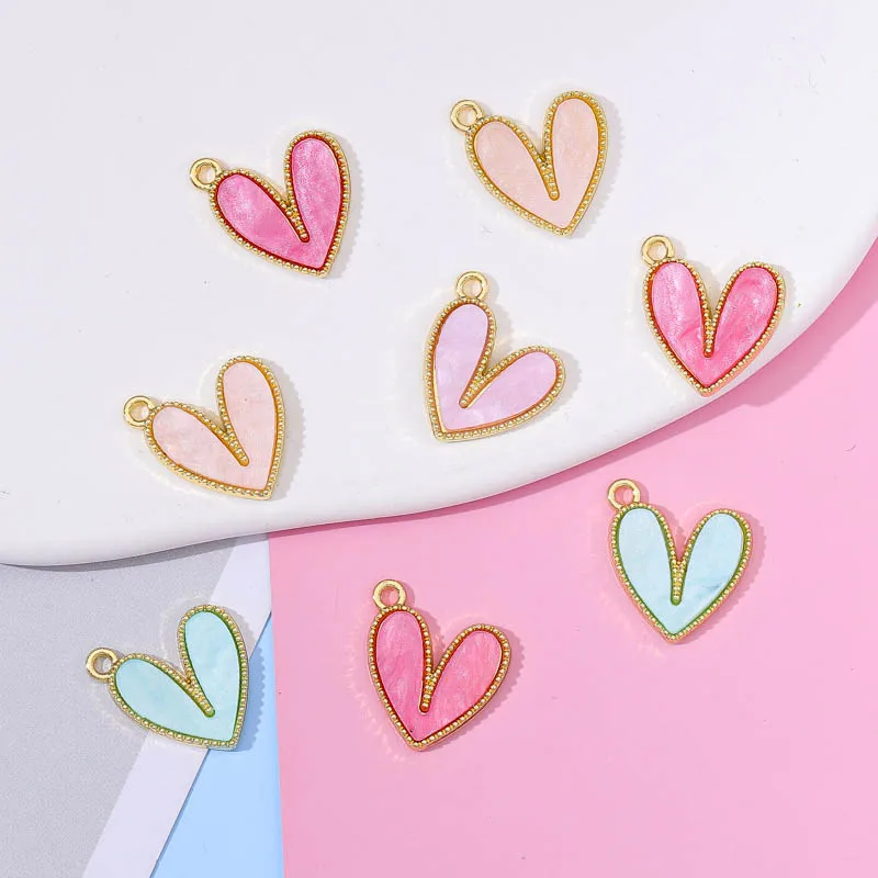 16*16MM 20 pièces rose violet amour coeur breloques pour bijoux N femmes fête boucles d...