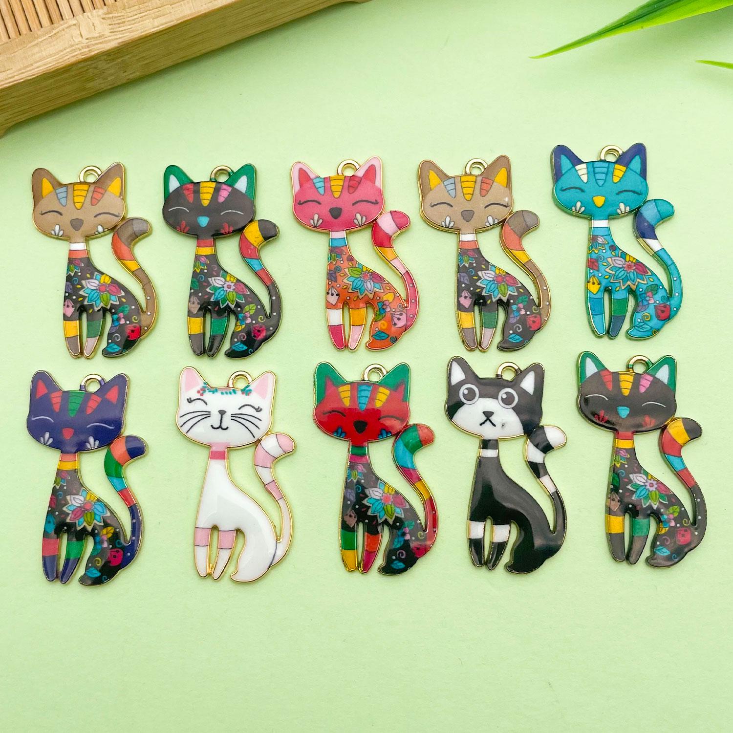10 pièces mignon dessin animé chat pendentifs en alli...