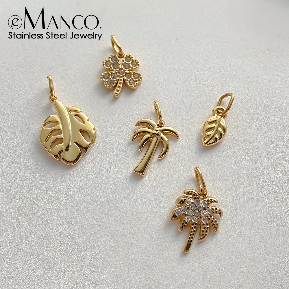 EManco pendentif en acier inoxydable breloques Motifs de plantes feuille tropicale palmier trè...